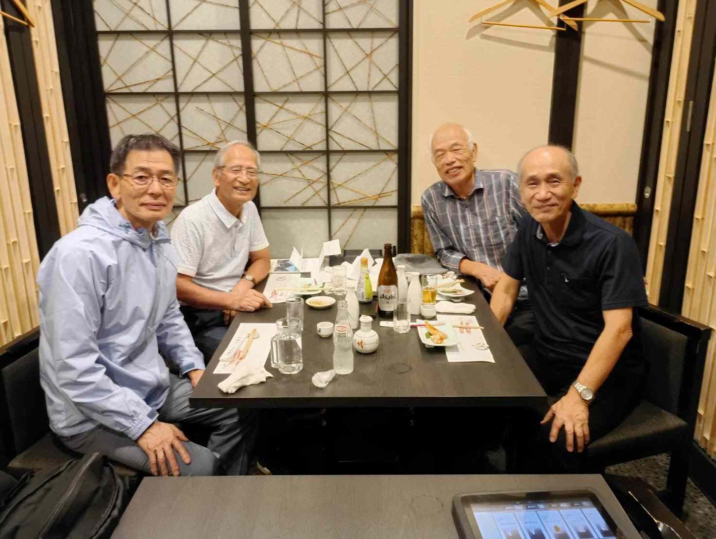 2019年年8月以来、5年ぶりに新宿栄寿司で暑気払いを行った。コロナ禍で支部活動が途絶え、さらに高齢者が軸であった活動も5年の歳月を経て、 頑健な方々が健康に支障をきたしてきたこともあり、参加メンバーは、12人から7人に減ったが、吉澤さん(H4年入学)の若い世代の登場は吉報だった。 さらに、ある先輩が2つの大病を克服した上に、非常に若やいでおられて、近況報告の際にその秘訣を披露され、一同おおいに驚いた。余生をただ惰性で消化する姿勢ではなく、大胆に何かを仕掛けて楽しんでいくことを見習いたいものである。 |